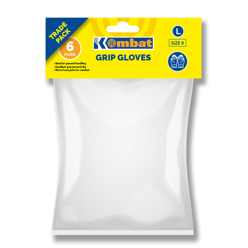 P101-FLWG09L Waterproof Foam Latex Grip Gloves 1PR Size9(L) MOQ-6PR 1 pair (Price per pair - Order by pack Qty) 9 (L) 6 pairs Header card with euro hanger