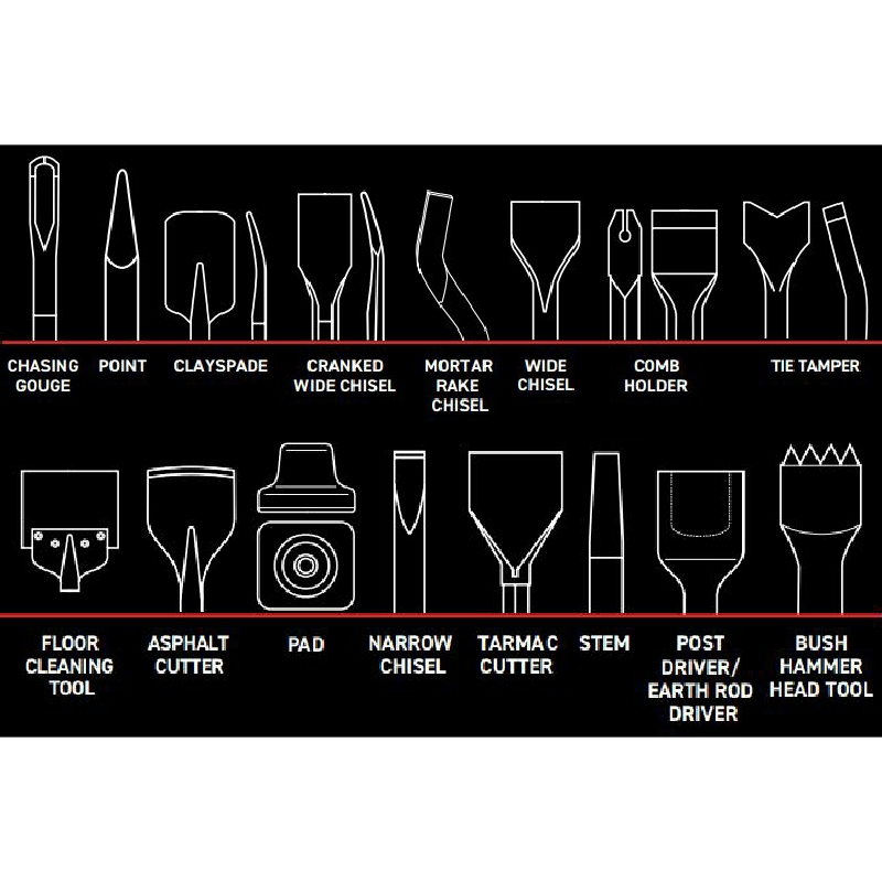 Points & narrow chisels - Demolition work in masonry & concrete, restoring joints & clearing reinforcements.